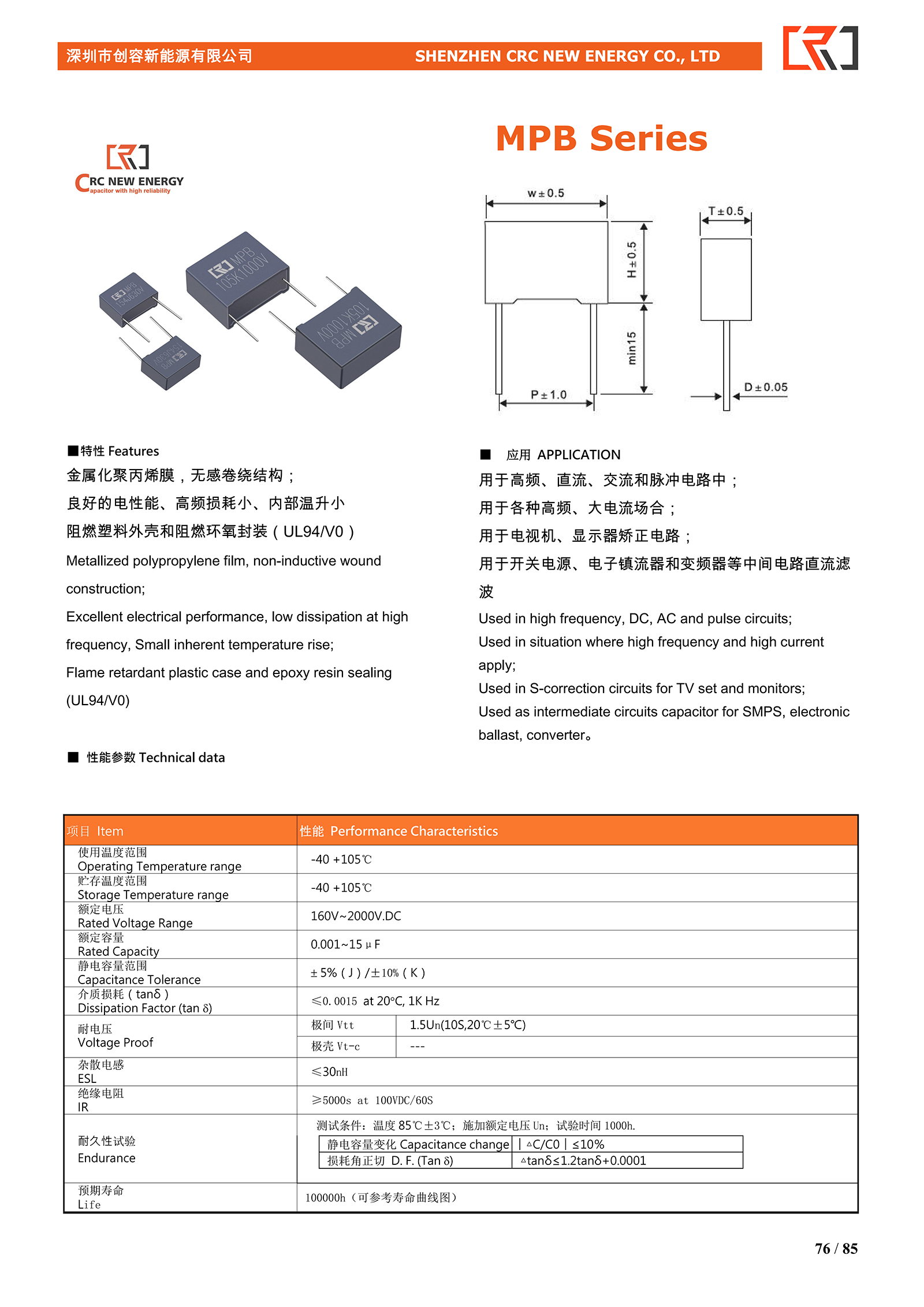 塑殼金屬化聚丙烯電容器